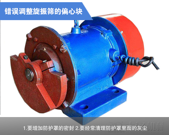調(diào)整圓振動(dòng)篩偏心塊時(shí),誤把兩端偏心塊的方向調(diào)反,使振動(dòng)電機(jī)產(chǎn)生一個(gè)空間扭矩,使振動(dòng)電機(jī)在非正常狀態(tài)下工作,進(jìn)而引起燒毀。因此調(diào)整偏心塊時(shí),一定要注意其對(duì)稱性,即兩端偏心塊要兩兩對(duì)應(yīng),或者說是兩端偏心塊的重心連接線要與轉(zhuǎn)軸平行,不能成異面狀態(tài)。由于振動(dòng)電機(jī)的工作環(huán)境大都非常惡劣、粉塵大,如果防護(hù)罩密封不嚴(yán),很容易進(jìn)灰塵,引起偏心塊的摩擦運(yùn)轉(zhuǎn),從而燒毀電機(jī)。所以在工作環(huán)境惡劣的地方,
