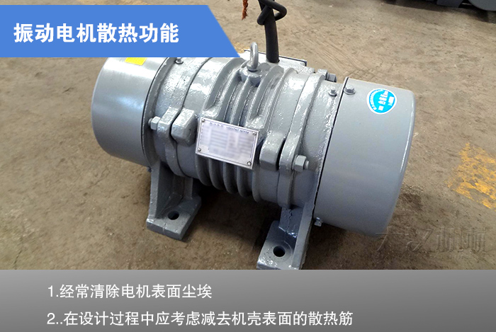 普通電機(jī)--端有風(fēng)扇,工作時(shí)使風(fēng)向順著機(jī)殼上面的立筋流動(dòng),不僅散熱較快,而且也清除了上面的塵埃,使電機(jī)在良好的狀態(tài)下工作。而振動(dòng)電機(jī)因無風(fēng)扇可散熱,全靠自然冷卻,再加上工作環(huán)境大都非常惡劣,粉塵大,粉塵極易在電機(jī)表面堆積,從而引起內(nèi)部溫度過高,燒毀電機(jī)。